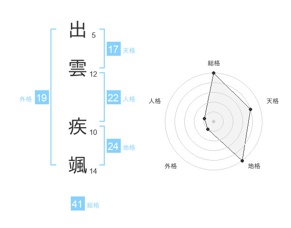 出雲 疾颯さんの総格は41画の5点!