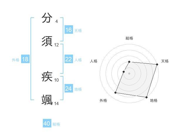 分須 疾颯さんの総格は40画の2点!