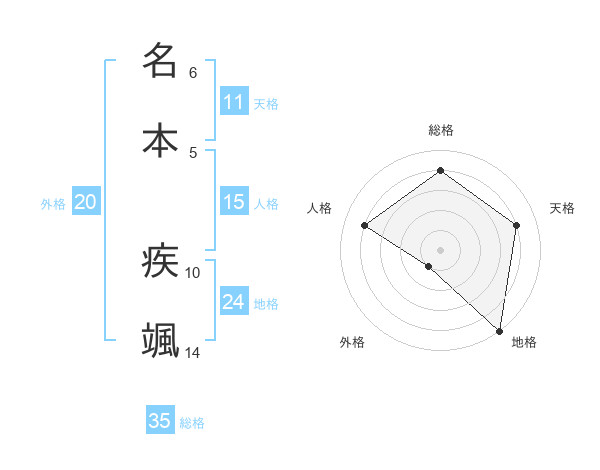 名本 疾颯さんの総格は35画の4点!