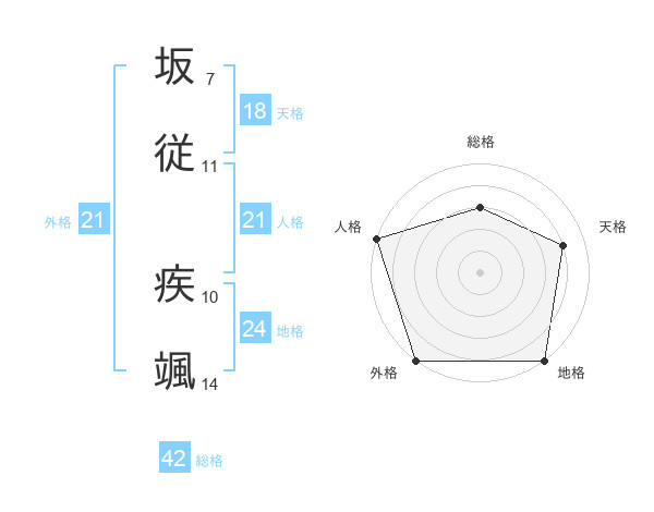 坂従 疾颯さんの外格は21画の5点!