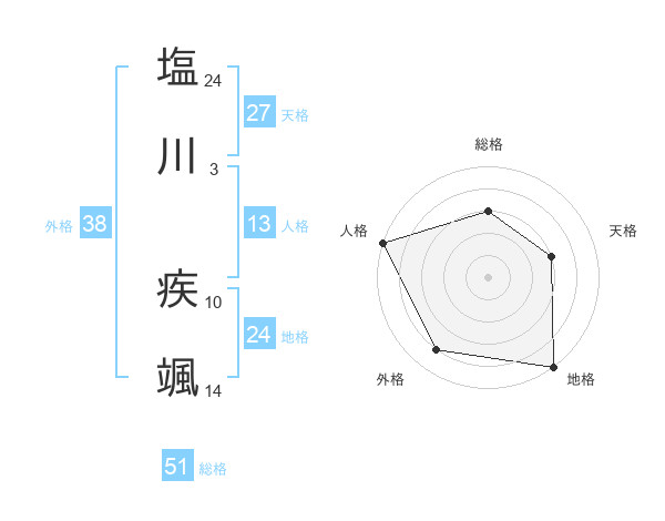 塩川 疾颯さんの総格は51画の3点!