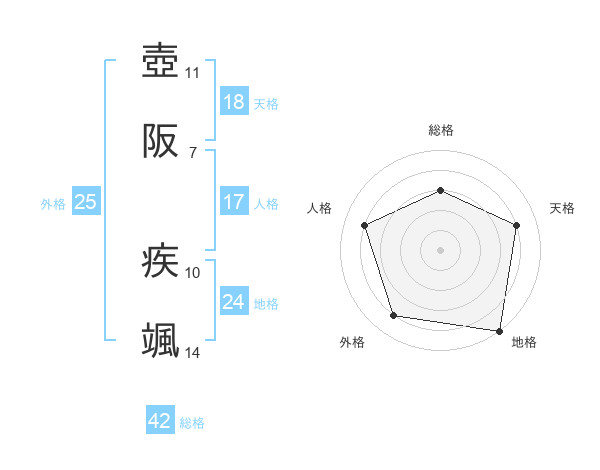 壺阪 疾颯さんの人格は17画の4点!
