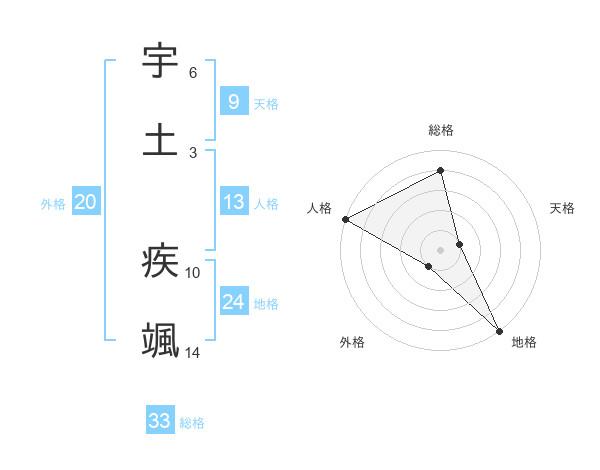 宇土 疾颯さんの総格は33画の4点!