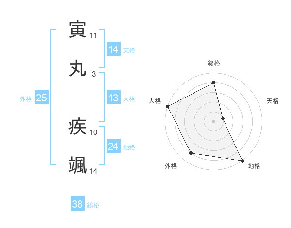 寅丸 疾颯さんの総格は38画の4点!