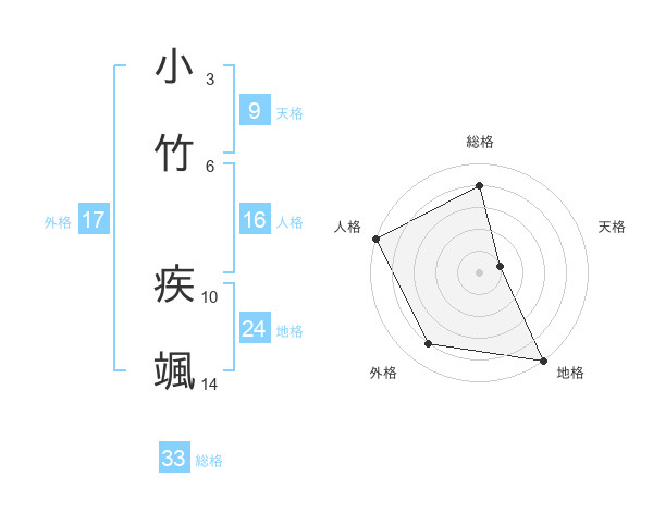 小竹 疾颯さんを姓名の画数から五運を鑑定