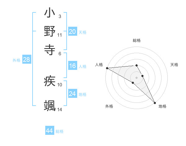 小野寺 疾颯さんを姓名の画数から五運を鑑定