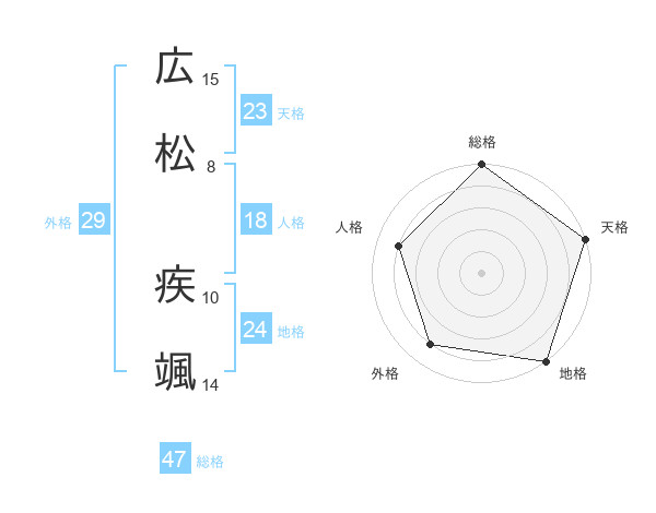 広松 疾颯さんの総格は47画の5点!