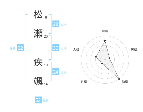 松瀬 疾颯さんを姓名の画数から五運を鑑定