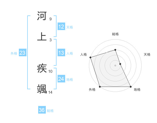 河上 疾颯さんを姓名の画数から五運を鑑定