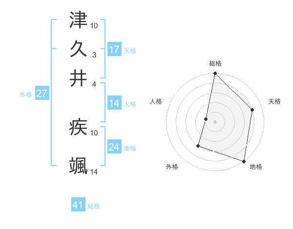 津久井 疾颯さんを姓名の画数から五運を鑑定