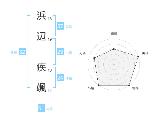 浜辺 疾颯さんの総格は61画の3点!
