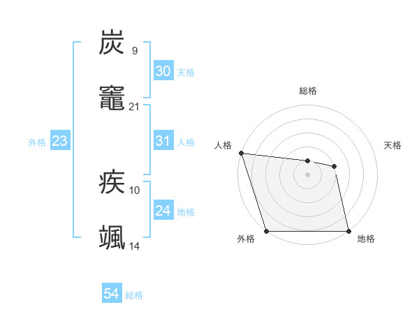 炭竈 疾颯さんの総格は54画の1点!