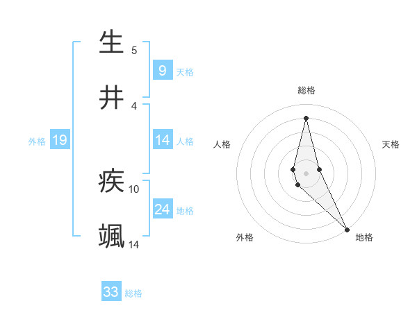 生井 疾颯さんの総格は33画の4点!