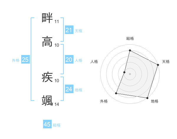 畔高 疾颯さんの天格は21画の5点!