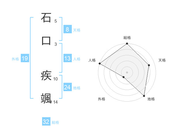 石口 疾颯さんを姓名の画数から五運を鑑定