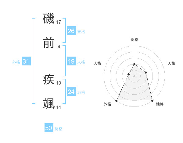磯前 疾颯さんを姓名の画数から五運を鑑定