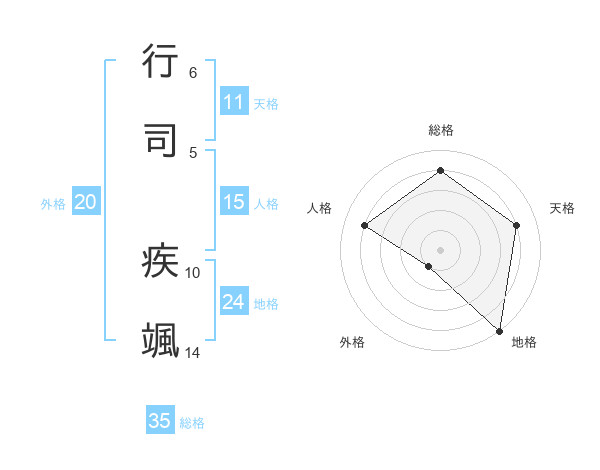 行司 疾颯さんの総格は35画の4点!