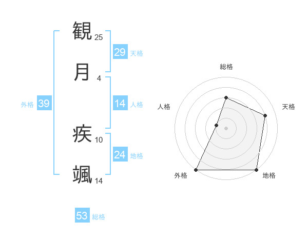 観月 疾颯さんを姓名の画数から五運を鑑定