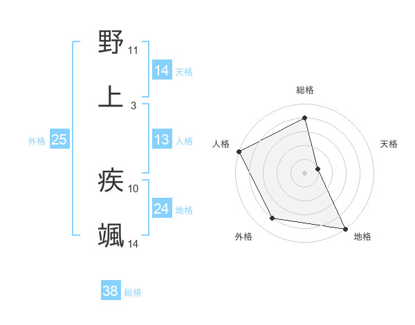 野上 疾颯さんを姓名の画数から五運を鑑定