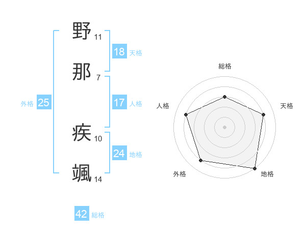 野那 疾颯さんの地格は24画の5点!