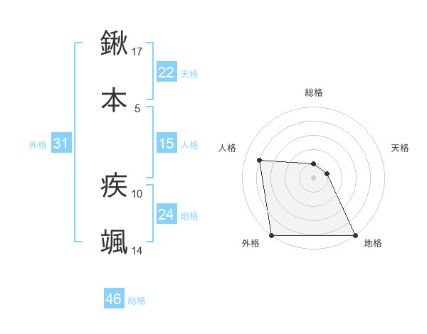 鍬本 疾颯さんを姓名の画数から五運を鑑定