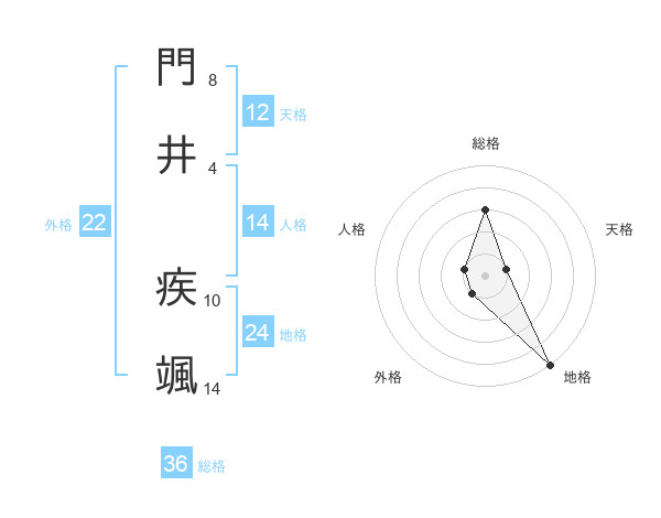 門井 疾颯さんの外格は22画の1点!