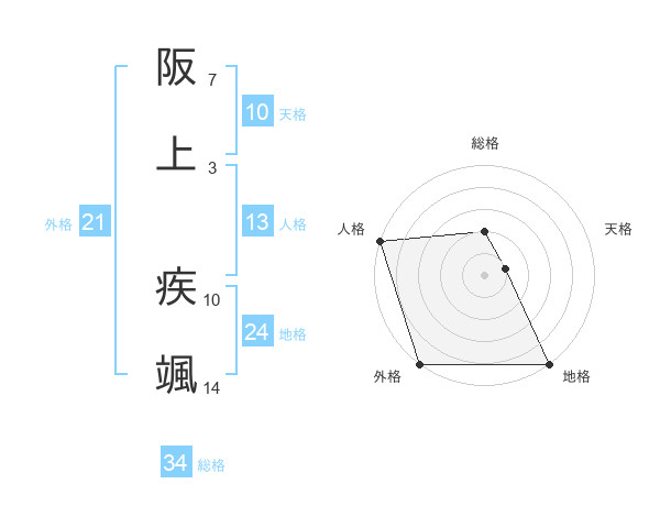 阪上 疾颯さんを姓名の画数から五運を鑑定