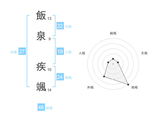飯泉 疾颯さんを姓名の画数から五運を鑑定