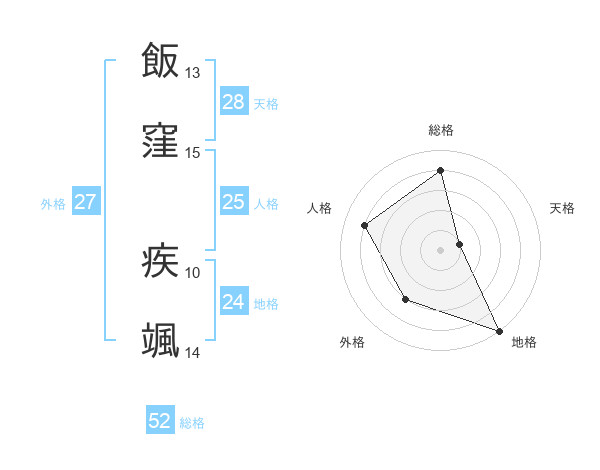 飯窪 疾颯さんを姓名の画数から五運を鑑定