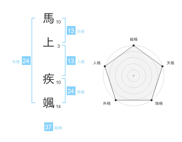 馬上 疾颯さんの総格は37画の5点!
