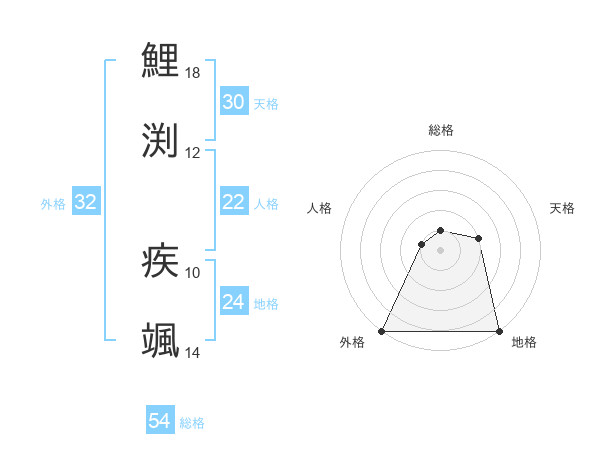 鯉渕 疾颯さんの総格は54画の1点!
