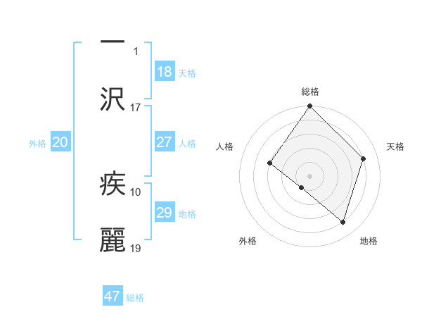 一沢 疾麗さんの総格は47画の5点!
