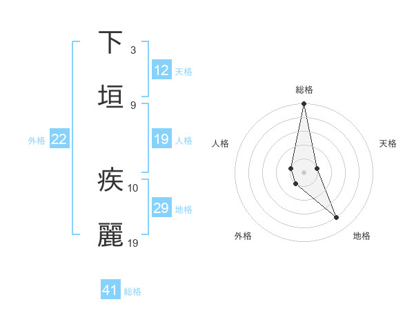 下垣 疾麗さんの総格は41画の5点!