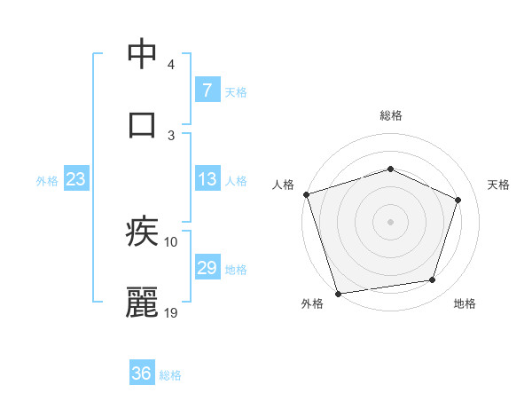 中口 疾麗さんの外格は23画の5点!