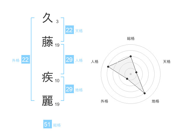 久藤 疾麗さんを姓名の画数から五運を鑑定