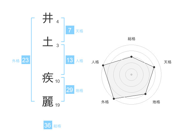 井土 疾麗さんを姓名の画数から五運を鑑定