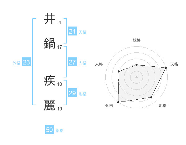 井鍋 疾麗さんを姓名の画数から五運を鑑定