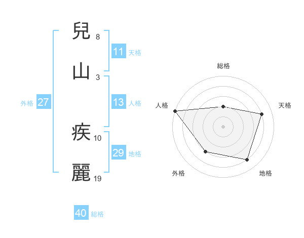 兒山 疾麗さんを姓名の画数から五運を鑑定