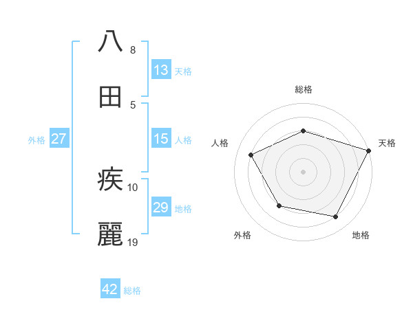 八田 疾麗さんの天格は13画の5点!