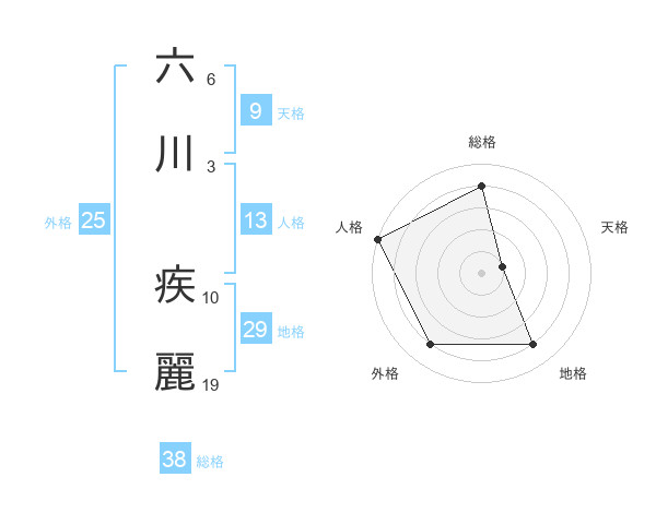 六川 疾麗さんを姓名の画数から五運を鑑定