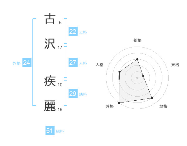 古沢 疾麗さんの総格は51画の3点!