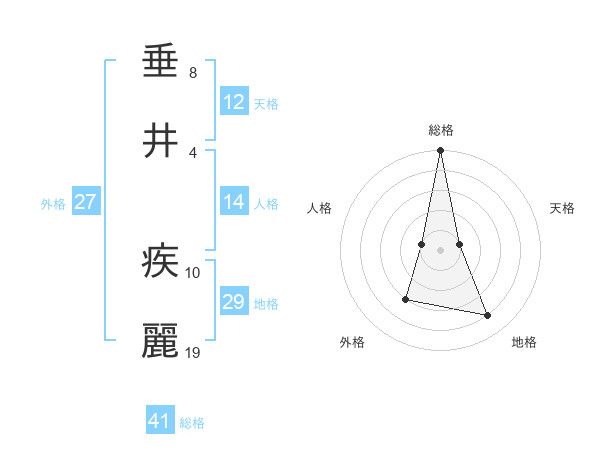 垂井 疾麗さんの総格は41画の5点!