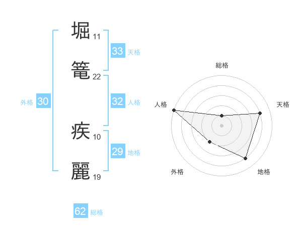 堀篭 疾麗さんを姓名の画数から五運を鑑定