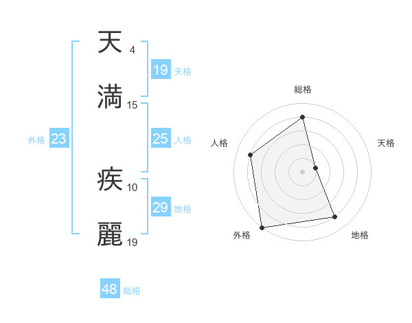 天満 疾麗さんを姓名の画数から五運を鑑定