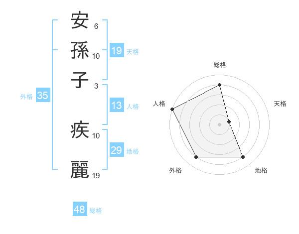 安孫子 疾麗さんの総格は48画の4点!