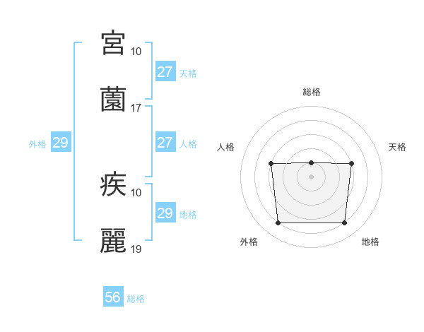 宮薗 疾麗さんの外格は29画の4点!