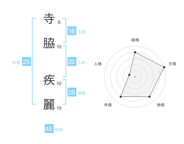 寺脇 疾麗さんを姓名の画数から五運を鑑定
