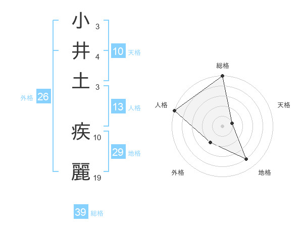 小井土 疾麗さんの総格は39画の5点!