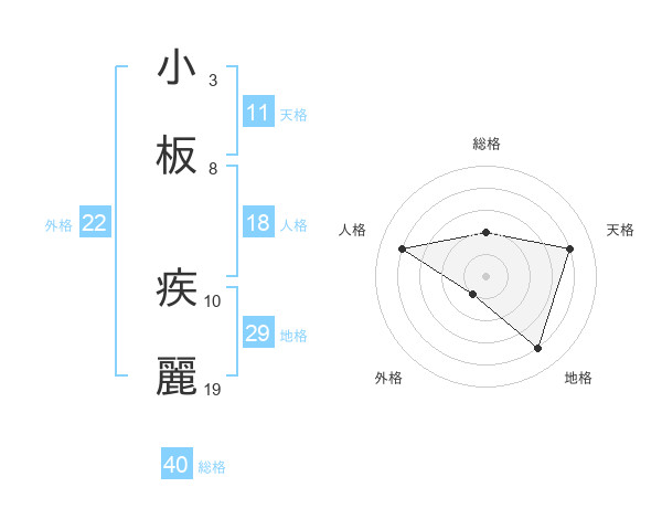 小板 疾麗さんを姓名の画数から五運を鑑定