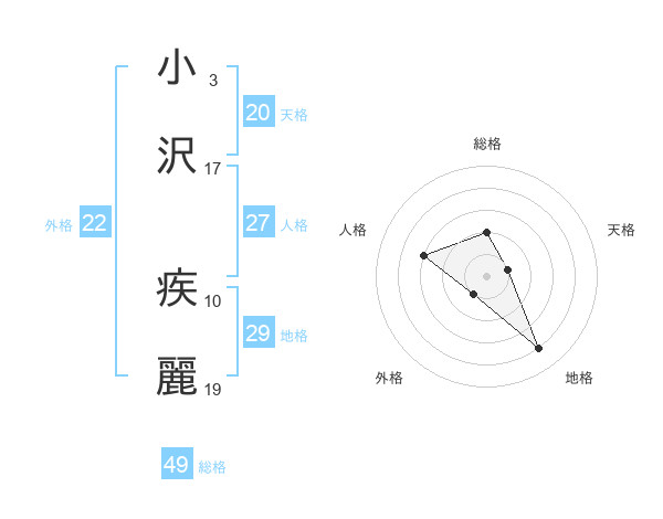 小沢 疾麗さんの天格は20画の1点!